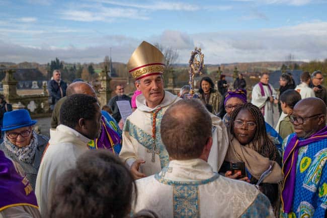 Le cardinal François-Xavier Bustillo décrit Montligeon comme « un sanctuaire où l’on vient trouver le réconfort, la consolation et la communion avec tous ceux qui sont partis ». Chacun cherche à maintenir un lien d’amour avec les proches qui ne sont plus là. Dans ce sens, la prière offre une manière de demeurer en présence d’eux, sans renier la réalité de la séparation. Lors de ce pèlerinage, il a été frappé par la vitalité des participants. La présence du groupe des Mureaux a créé « une ambiance de joie », qui révèle la diversité de l’Église et, en même temps, son unité profonde. Cette diversité manifeste le dynamisme du corps ecclésial, où chaque personne trouve sa place et enrichit les autres.