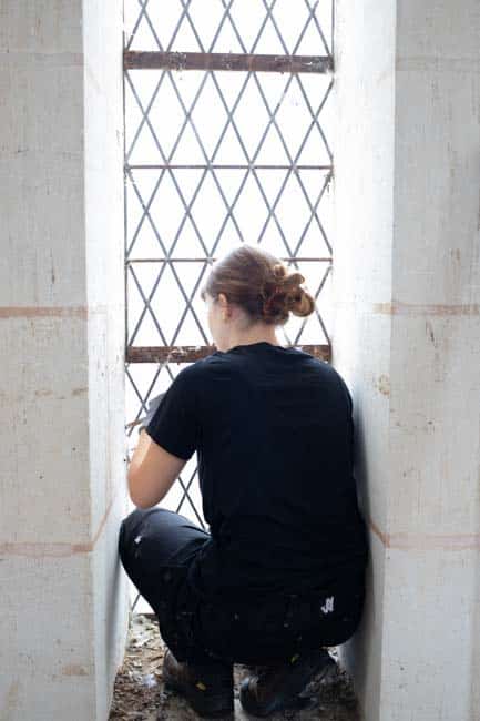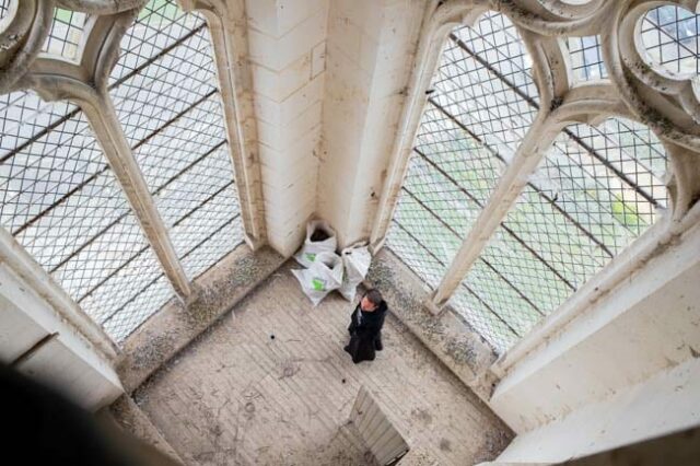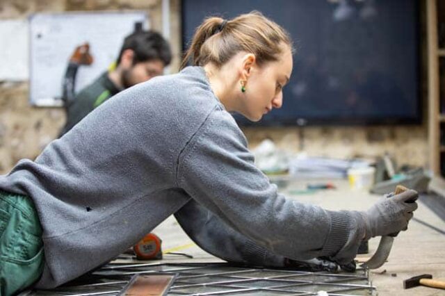 « Je m’appelle Cyril Gouty, maître verrier, et je travaille avec mon atelier spécialisé dans la restauration du patrimoine », précise-t-il. Son équipe s’est déplacée à Montligeon pour intervenir sur les vitraux endommagés par le temps et les intempéries. Leur savoir-faire consiste à démonter, nettoyer et restaurer chaque pièce de verre avant de les replacer dans la structure d’origine.
