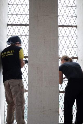 Le chantier concerne plusieurs baies superposées. « Nous travaillons sur les trilobes et les parties basses, où les verres sont les plus fragiles. Après le retrait, nous redescendons les vitraux à l’atelier pour les restaurer », explique Cyril Gouty. Le travail inclut également le calfeutrement provisoire des ouvertures, afin de protéger la basilique durant l’absence des vitraux. Une fois nettoyés, renforcés et sertis à neuf, ils seront replacés dans les tours de la basilique.